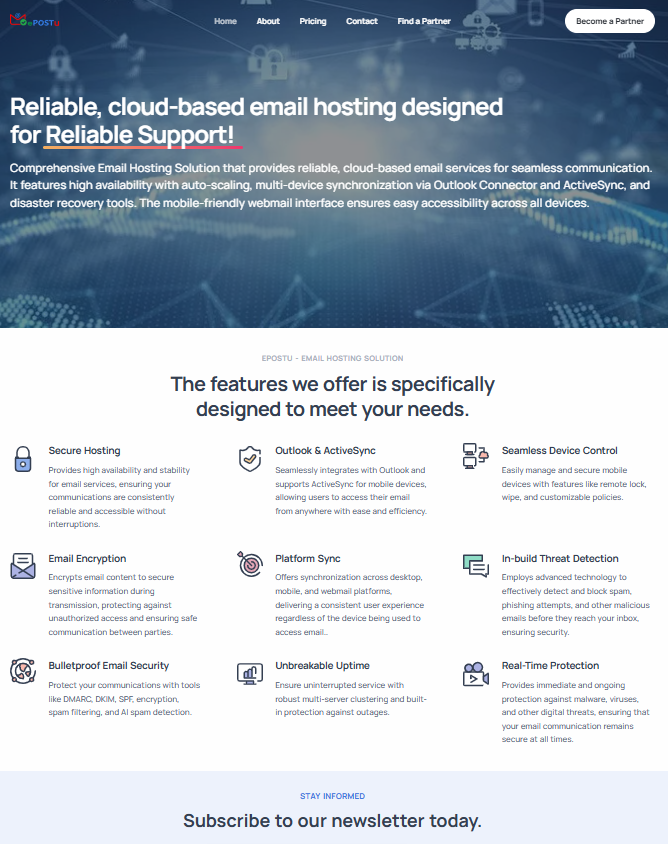 This website offers reliable cloud-based email hosting with multi-device sync, webmail access, and disaster recovery for smooth communication